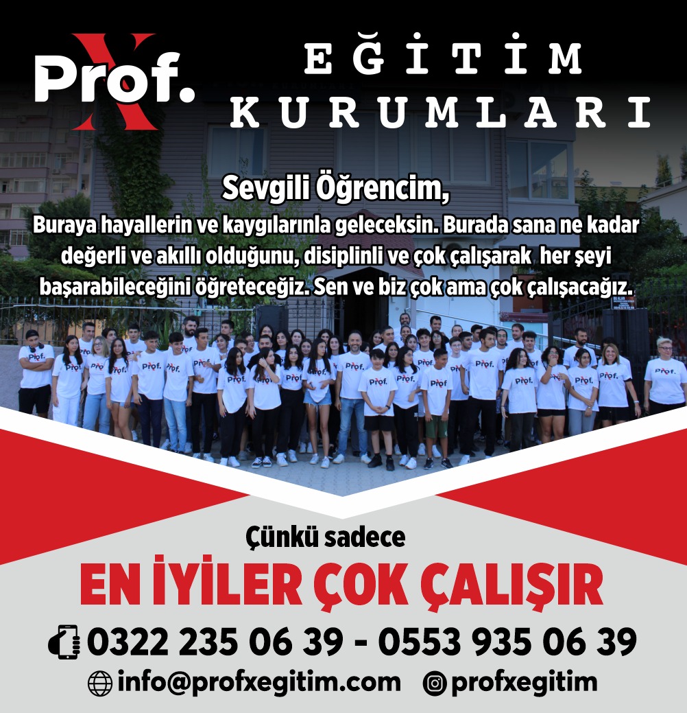 Prof. X Eğitim Kurumları olarak temel görevimiz her öğrencimizi kendisinin ve ailesinin hayal ettiği üniversiteye taşıyarak istediği ve sevdiği işi yapan mutlu bireyler yaratmaktır.
